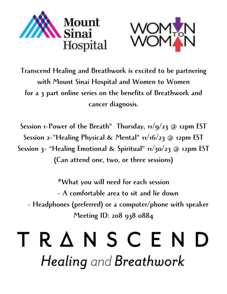 In all stages of the cancer process including testing, diagnosis, treatment, recovery, follow up care, etc, breathwork can help. By using the breath to cope with the anxiety, fear, pain, and daily struggles of a cancer diagnosis, we can help overcome the thoughts, emotions and feelings that come with the journey.